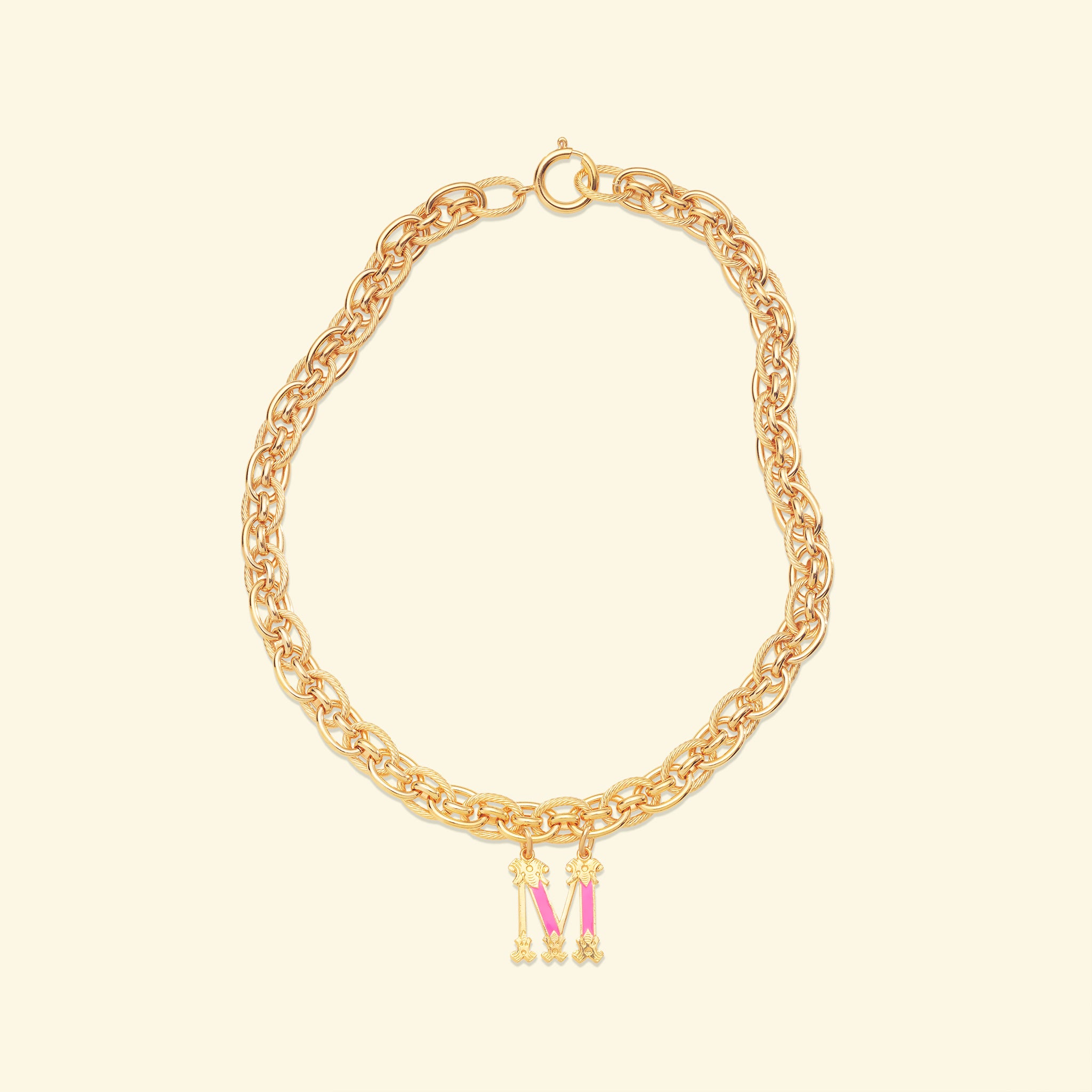 « J'ai conçu les colliers Bright Words comme une variante des colliers Weird Words. Après ces longs mots ornés en lettres simples, je voulais une seule initiale colorée en lettres très ornées ! Je porte le A, pour Anton Tchekhov, mais n'hésitez pas à porter votre initiale, ou celle de votre moitié ! »