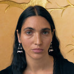 A new, cooler take on the Gallipoli earrings. Foiled glass beads shine against a fine silver chain, giving a subtle kind of light. Please note, we made this piece to appease silver lovers. We heard you! There you go! The only Gallipoli earrings set in a silver tone. Also, every strass is added by hand, stone by stone, in our Paris atelier.