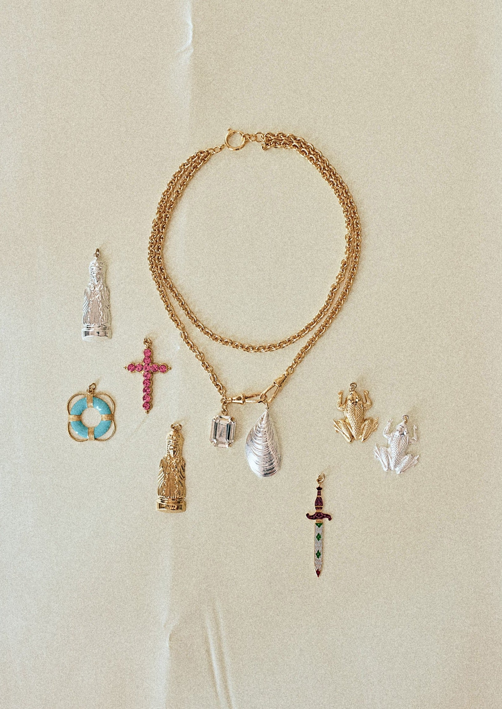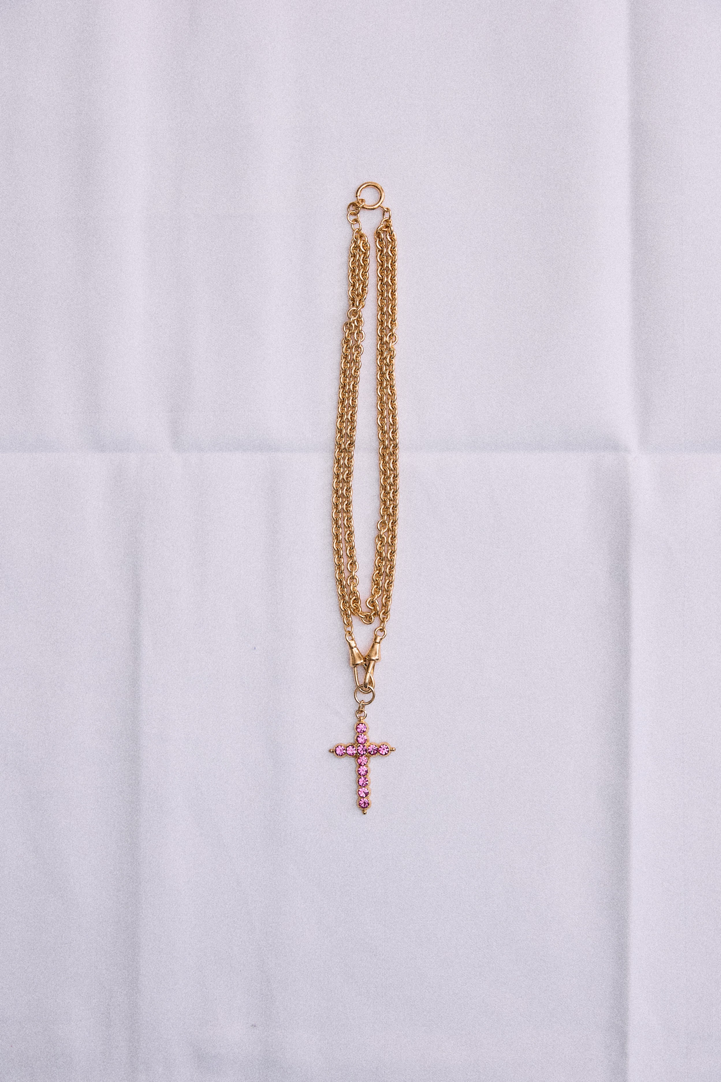 The cross with the rainbow strass: either a LGBTQIA+ charm or a religious one (and by extension a reference to a lover who was rather conservative)