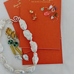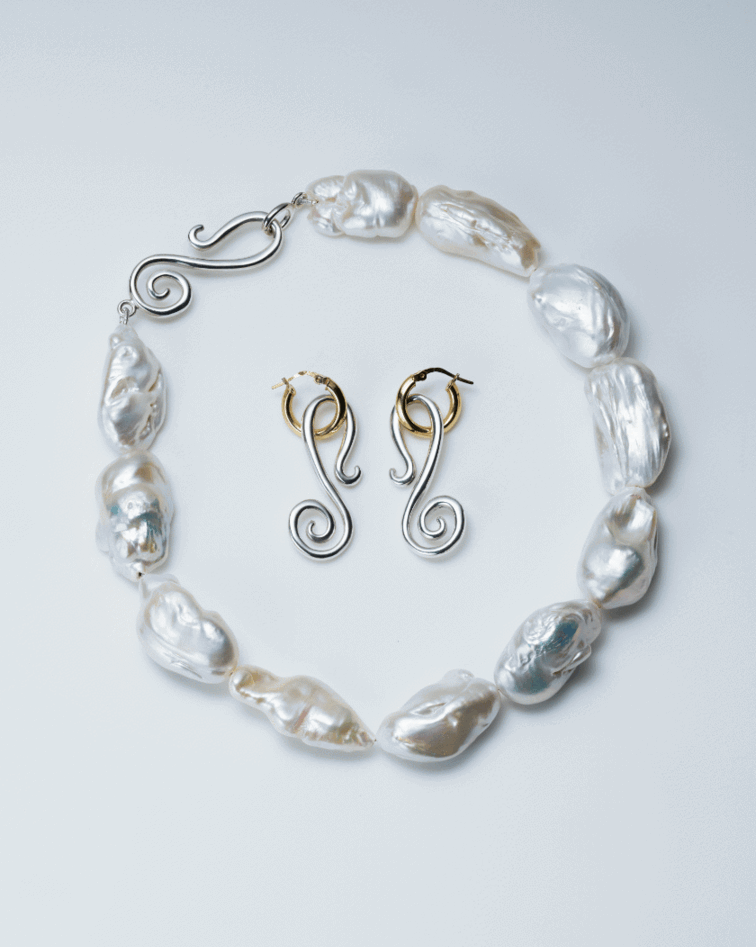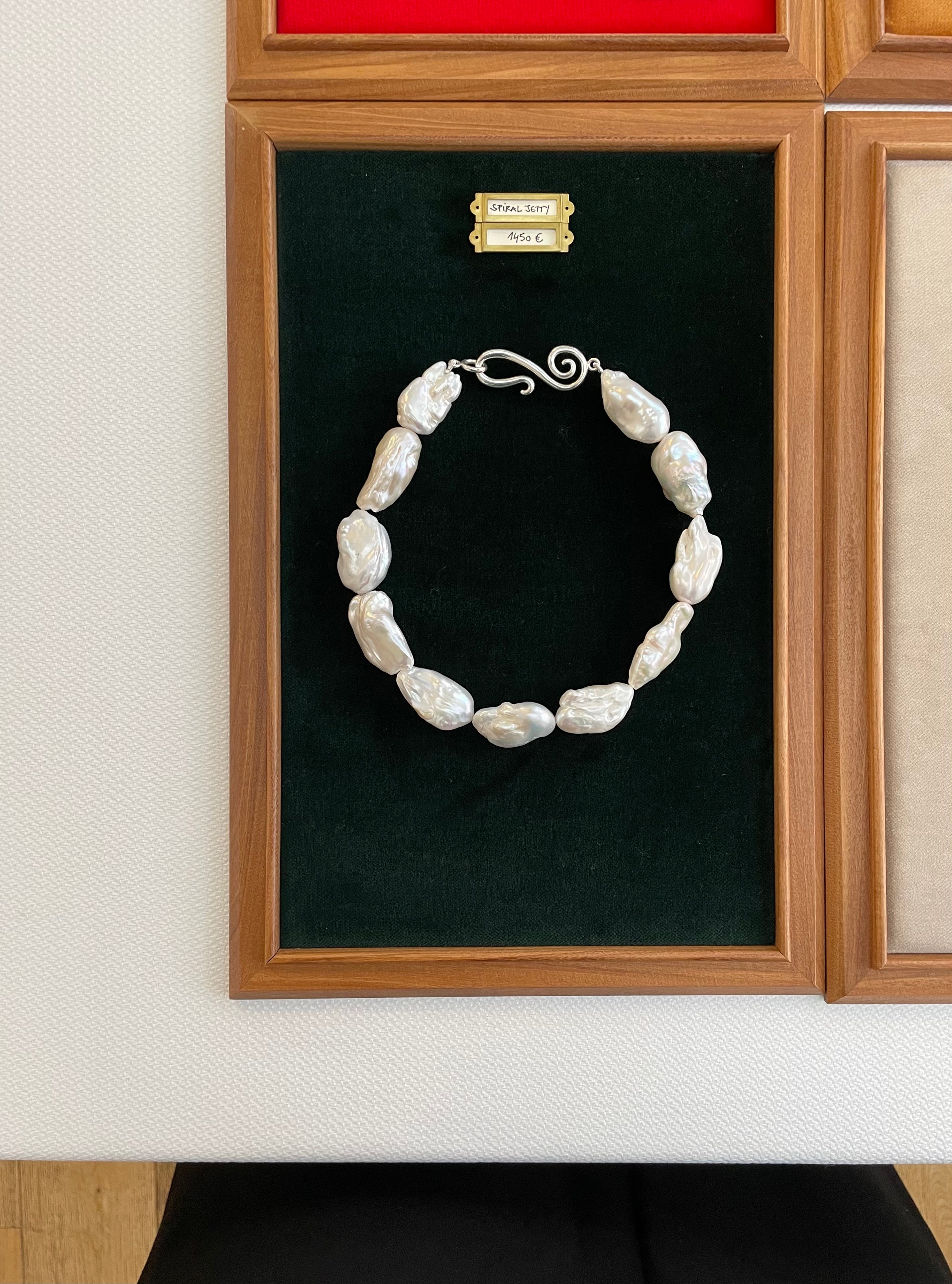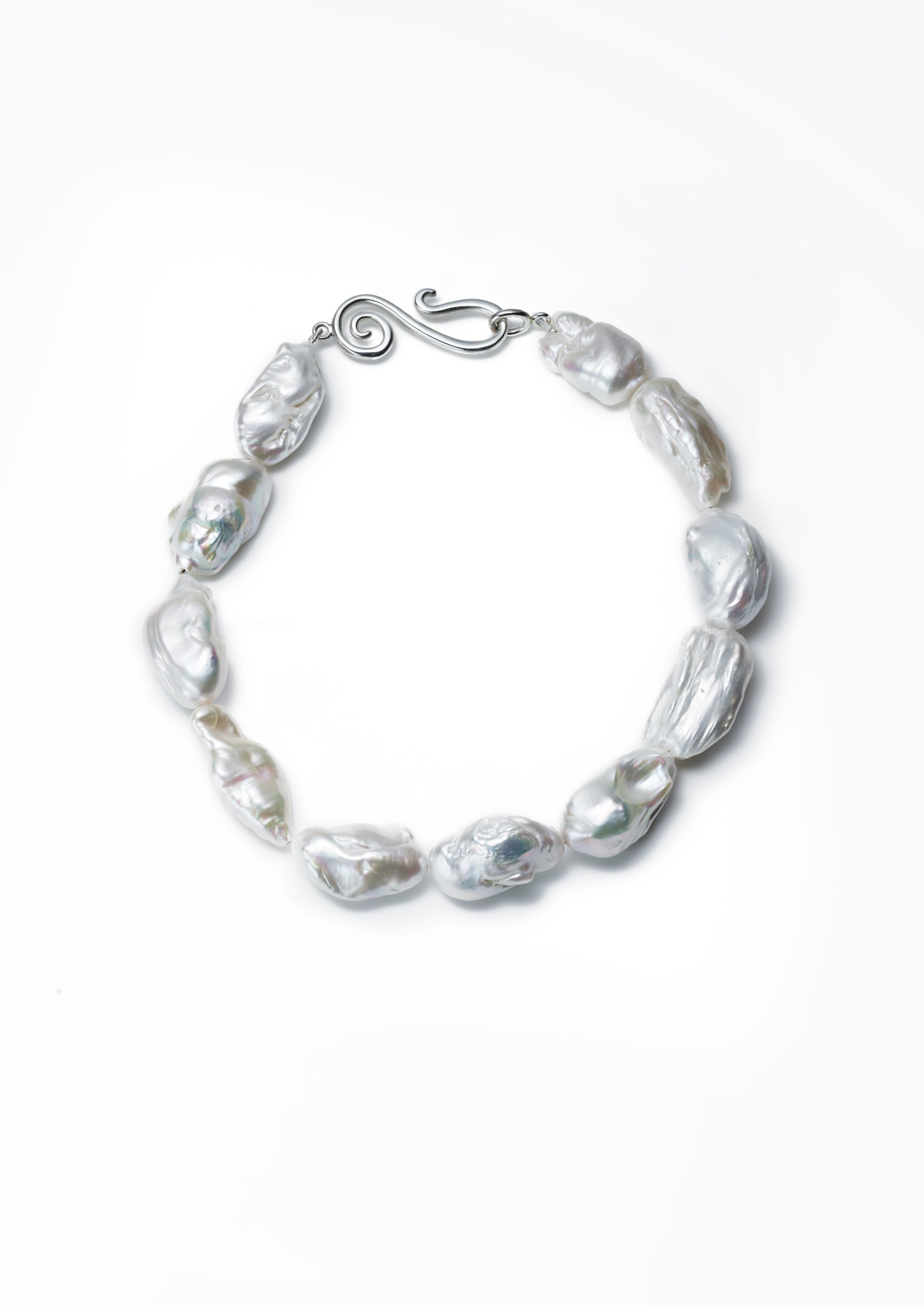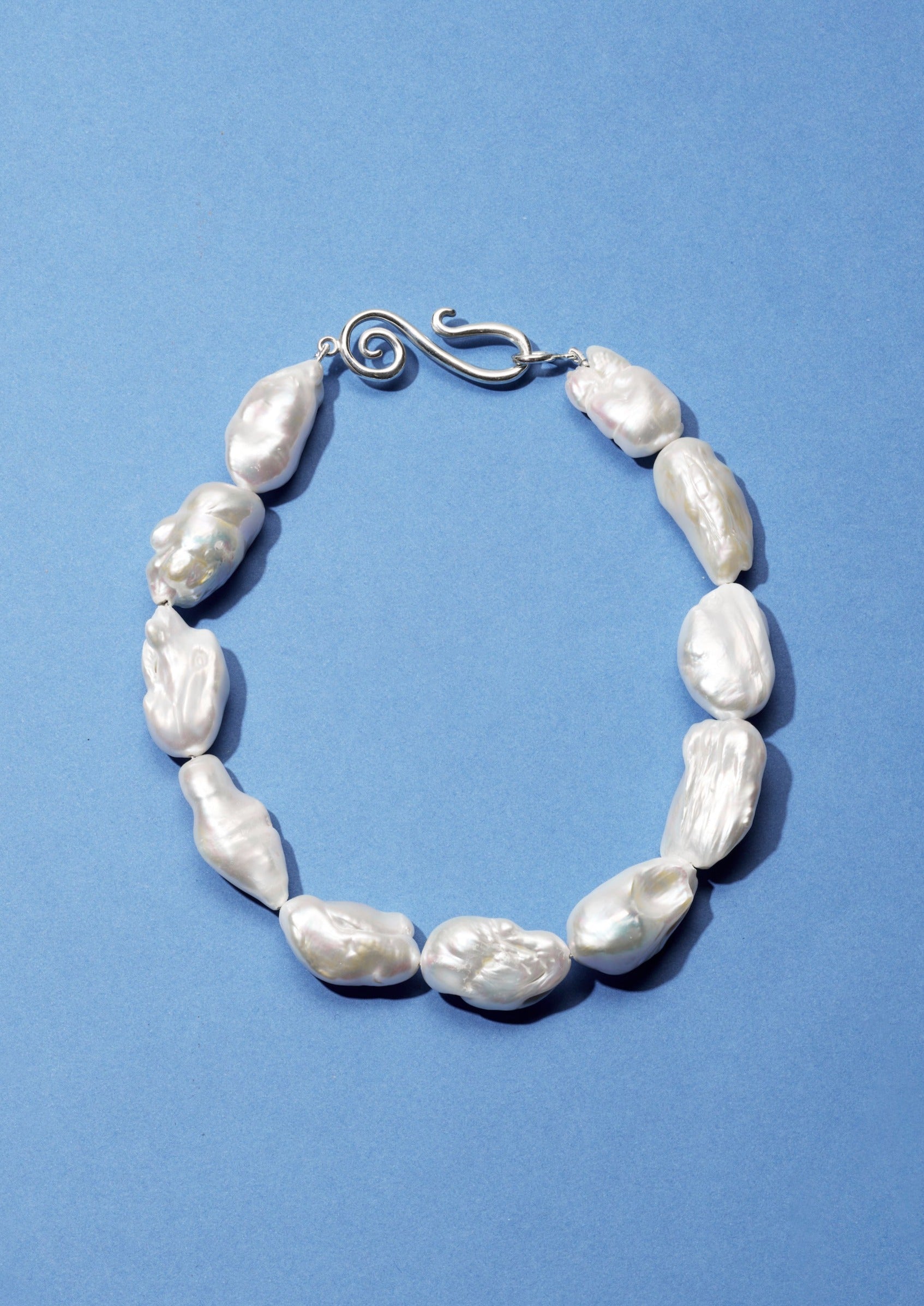 The Mother Of All Pearls necklace is a bold, slightly wobbly, unique and extraordinary variation on the quaint, classic pearl necklace. I wear mine all the time.