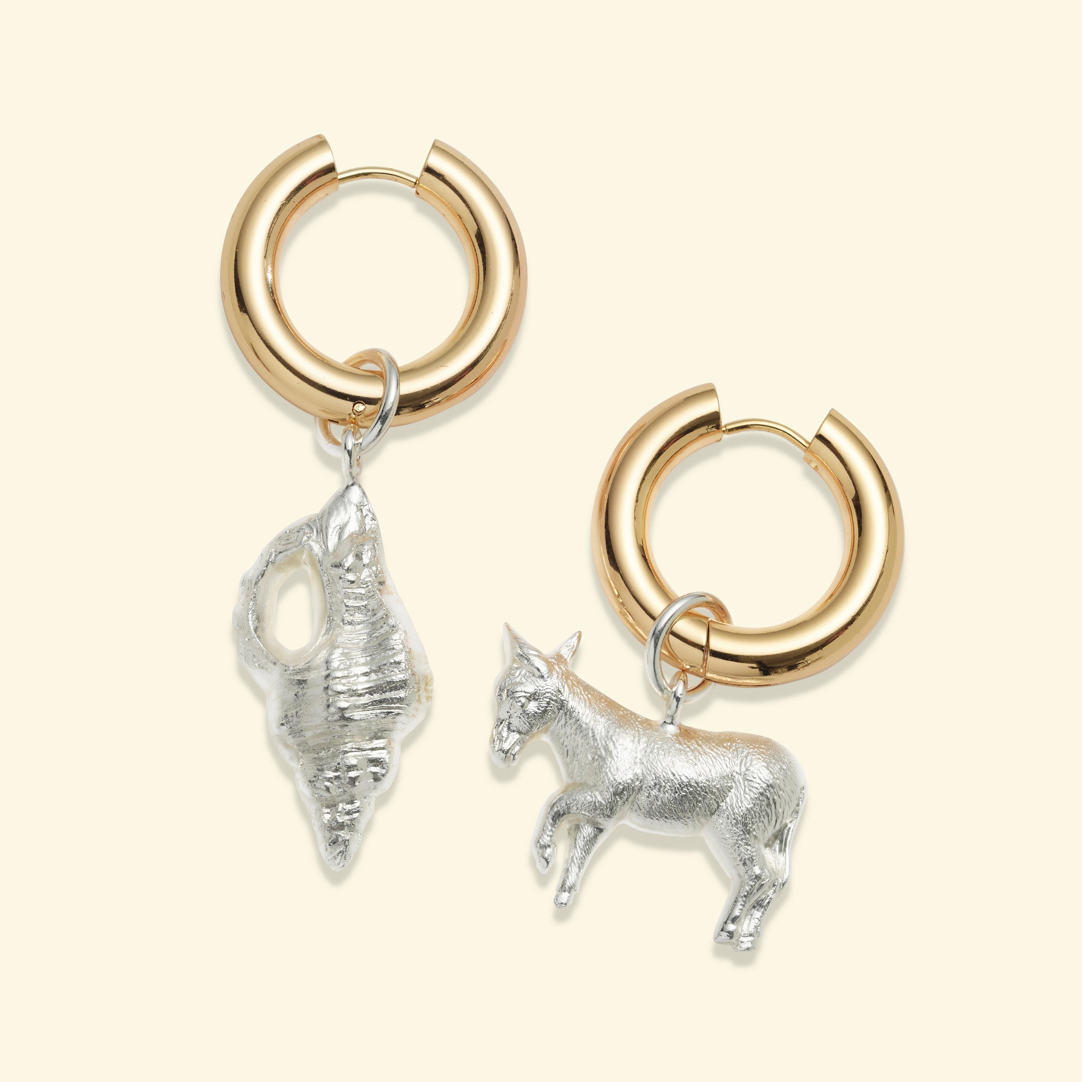 The Failaka earrings were designed as a souvenir from a mythical land mostly deserted today, but where a a few donkeys (and a handful of people) still live. Playful and delightfully weird, they are meant to shimmer on your ears - and in your mind.