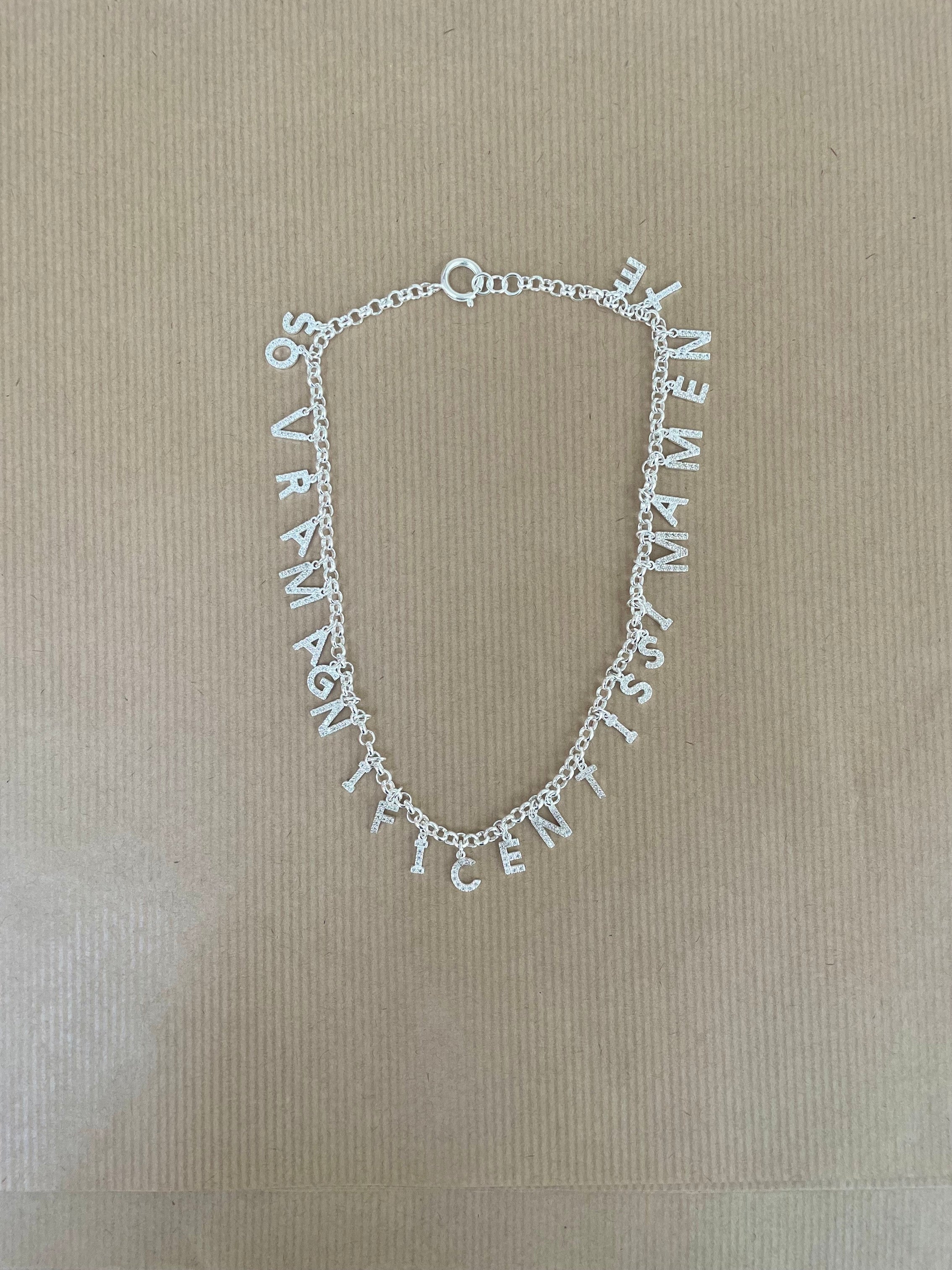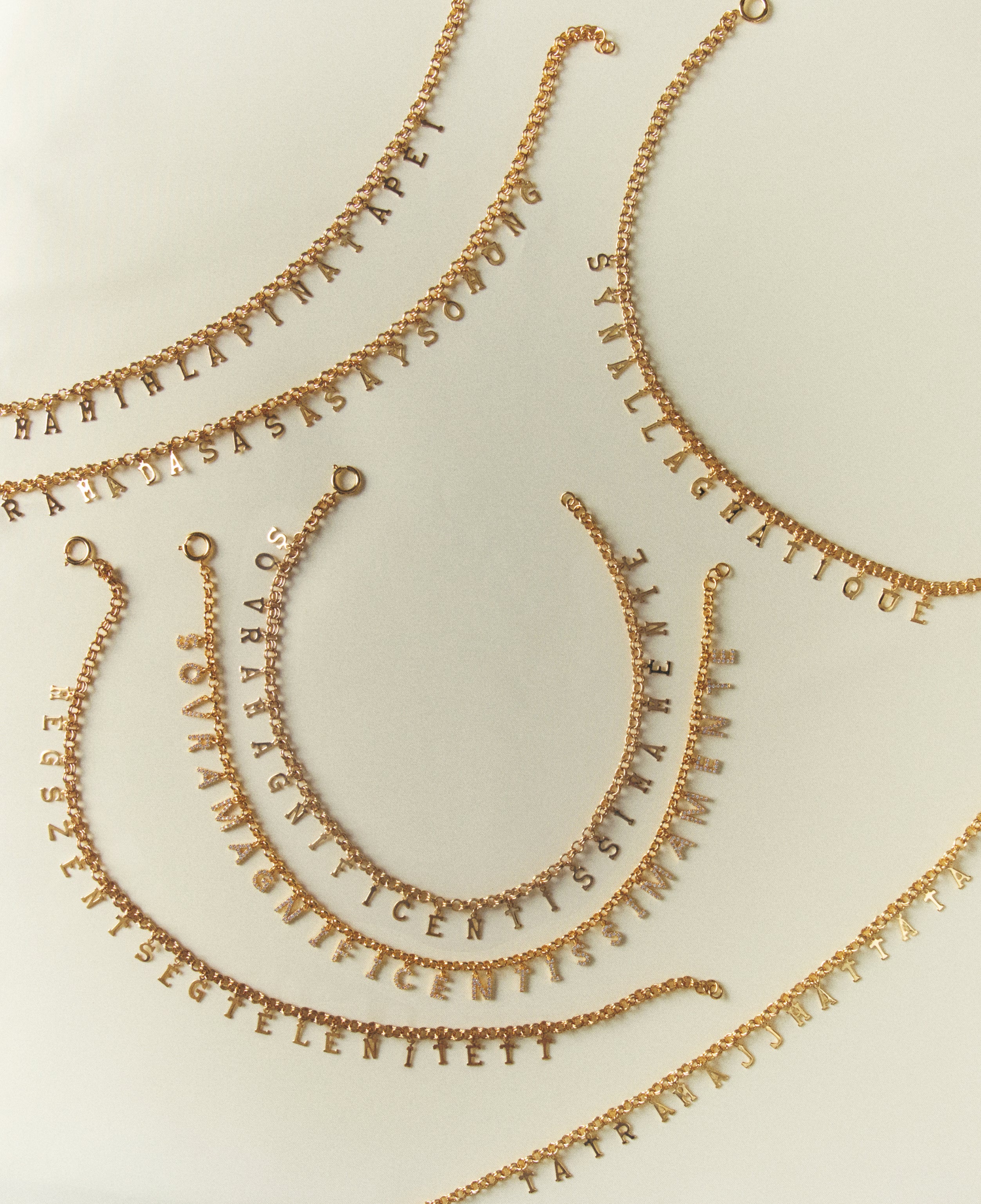 I wanted to pay homage to the beauty of words, and also to poke (gentle) fun at the trend of name tag necklaces!